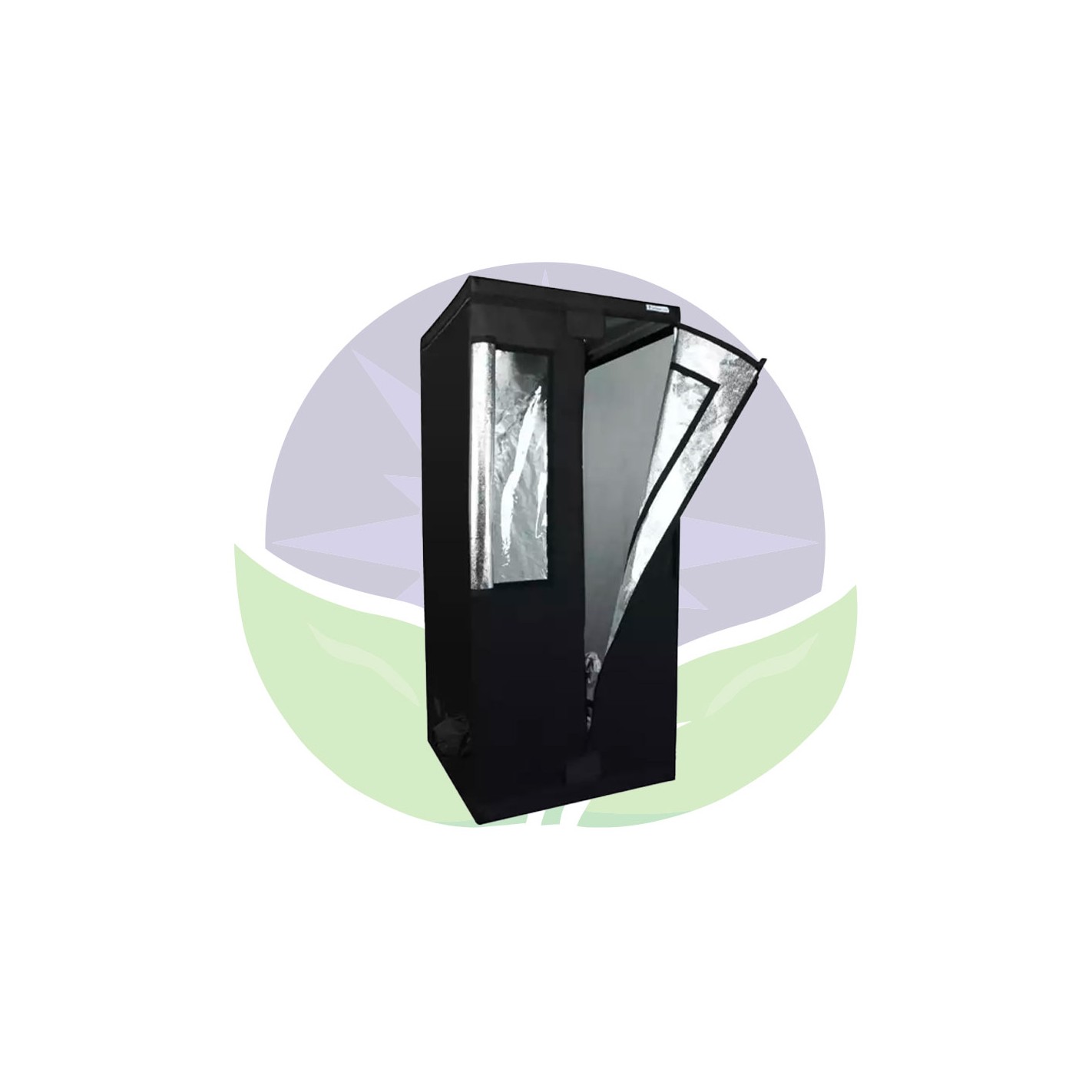 Made in Germany from high-quality materials, the inside is made from reflective Mylar and the outside from black polyester, which is totally opaque and waterproof. It has low openings for cables and high openings for ventilation. The two sliding windows are light-tight and fitted with 700-micron MicroMesh insect screens. The bars have a maximum load capacity of 50 kg to support your lights, extractors, etc.