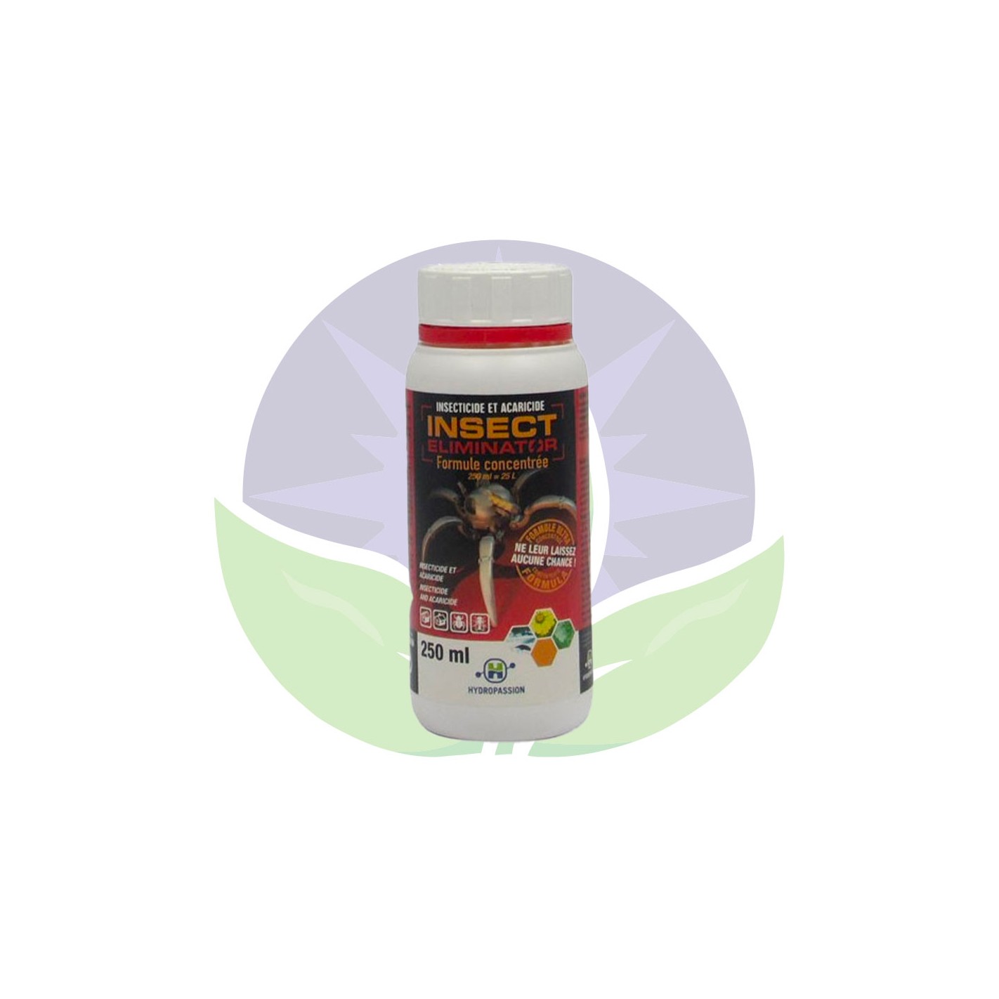 Discover Hydropassion's Insect Eliminator concentrate. This ultra-concentrated 250 ml insecticide should be used as soon as the first pests appear or as a preventive measure. It can be sprayed on walls, pots, cracks, door frames, etc.