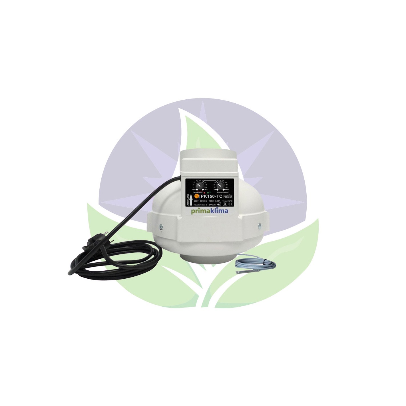 The PK150-TC fan gives you optimum control over your grow tent. As shown below, you will have a knob to set the required temperature (T°C adjustable from 20 to 30°C) and another to set the speed percentage ranging from 0 to 100%. With your programming and the sensor, your extractor will only be activated when necessary.