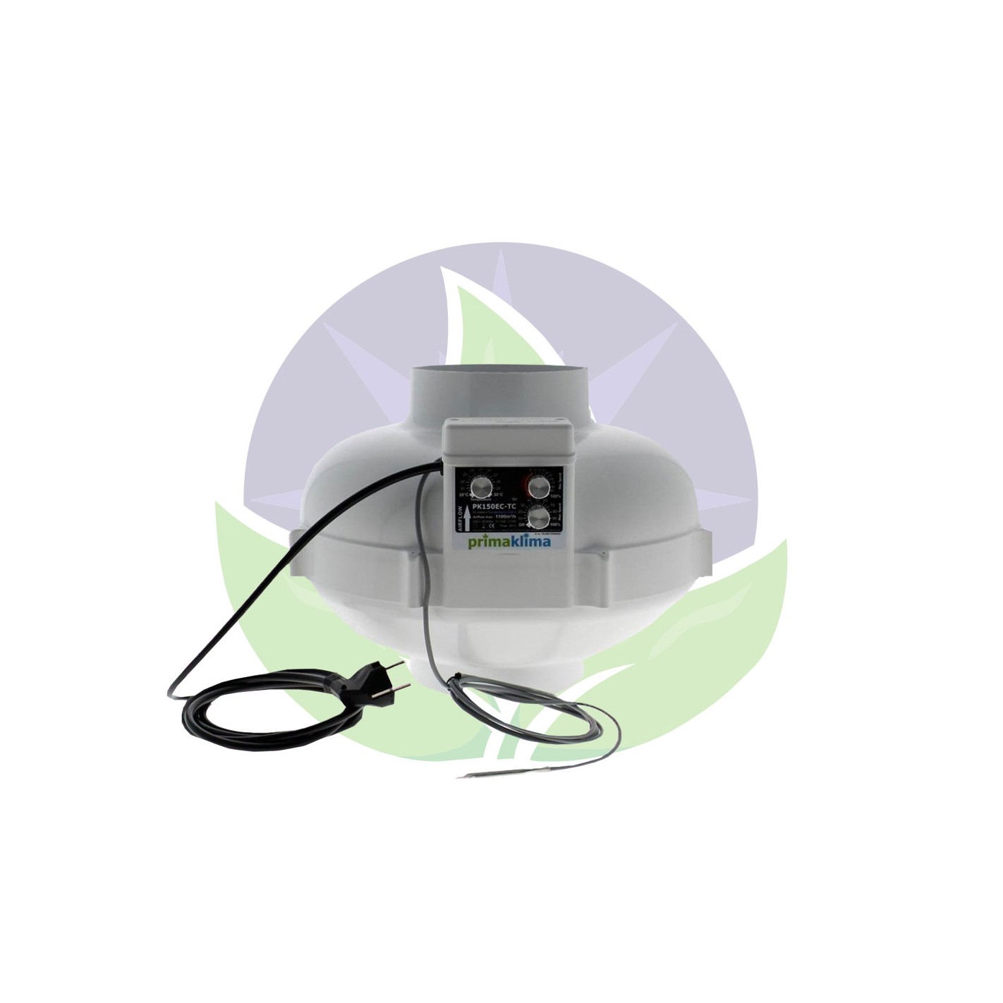 The PK150-TC fan gives you optimum control over your grow tent. As shown below, you will have a knob to set the required temperature (T°C adjustable from 20 to 30°C) and another to set the speed percentage ranging from 0 to 100%. With your programming and the sensor, your extractor will only be activated when necessary.