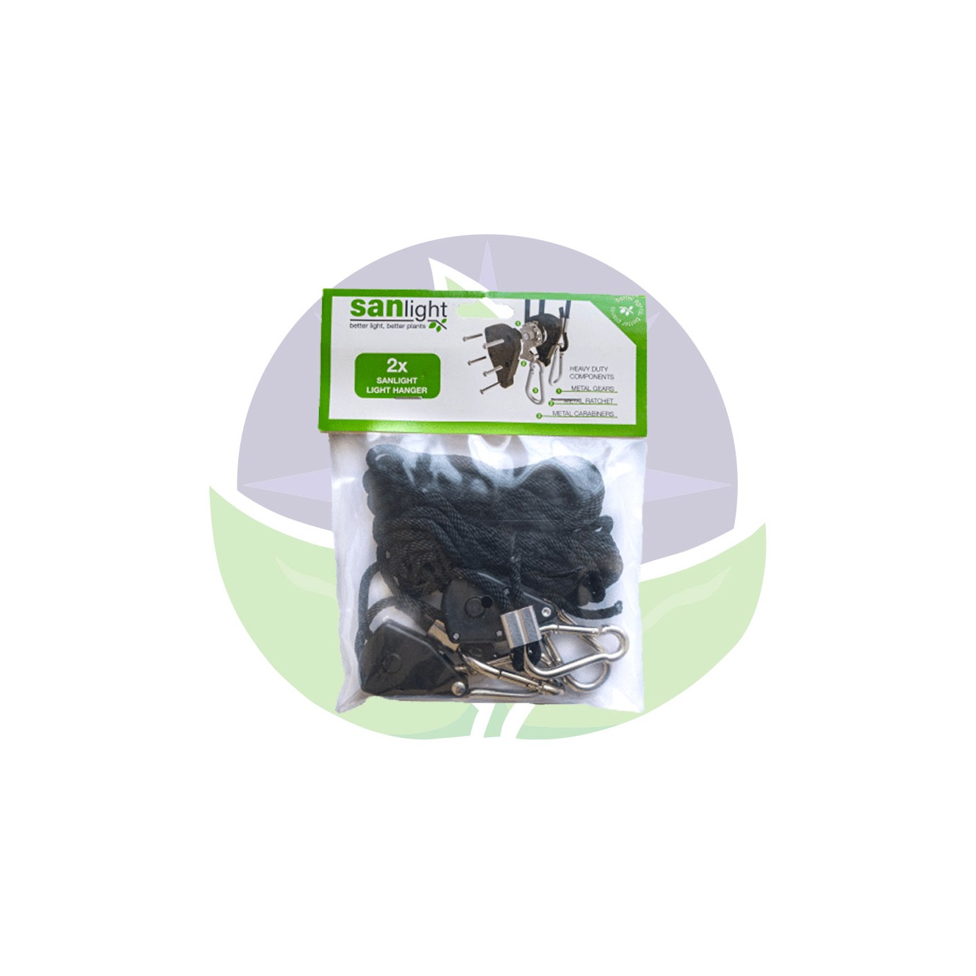 Découvrez le kit de suspension Sanlight, équipé de mousquetons en métal avec lesquels vous pourrez suspendre vos luminaires.Chaque cintre pourra supporter une charge maximale de 30 Kg.