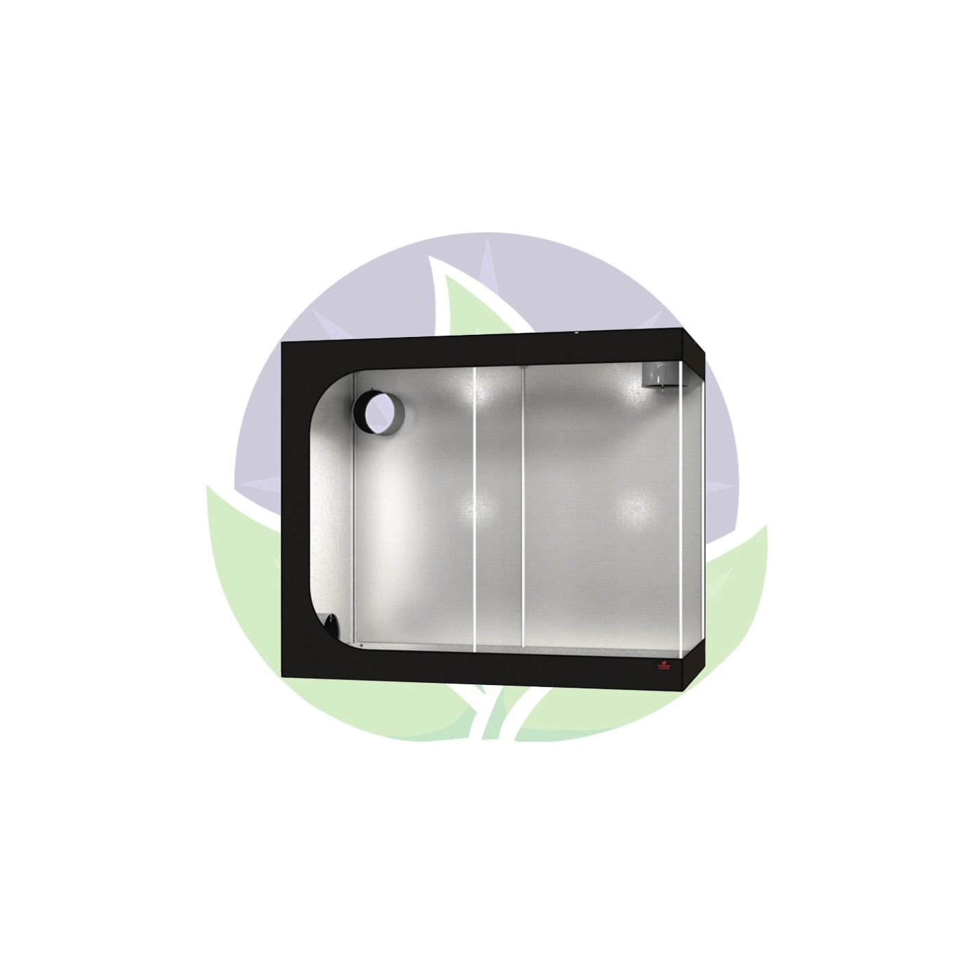La box 240W est recouverte du revêtement intérieur Mylar 210D. Elle est équipée de barres de structures en acier de diamètre 19 mm. Ces zips d'ouverture sont à double rabat pour une parfaite étanchéité à la lumière. Ces barres de soutiens amovibles peuvent soutenir jusqu'à 15 kilos chacune pour accueillir vos éclairages, système de ventilation. La box est fournie avec un Water Tray.