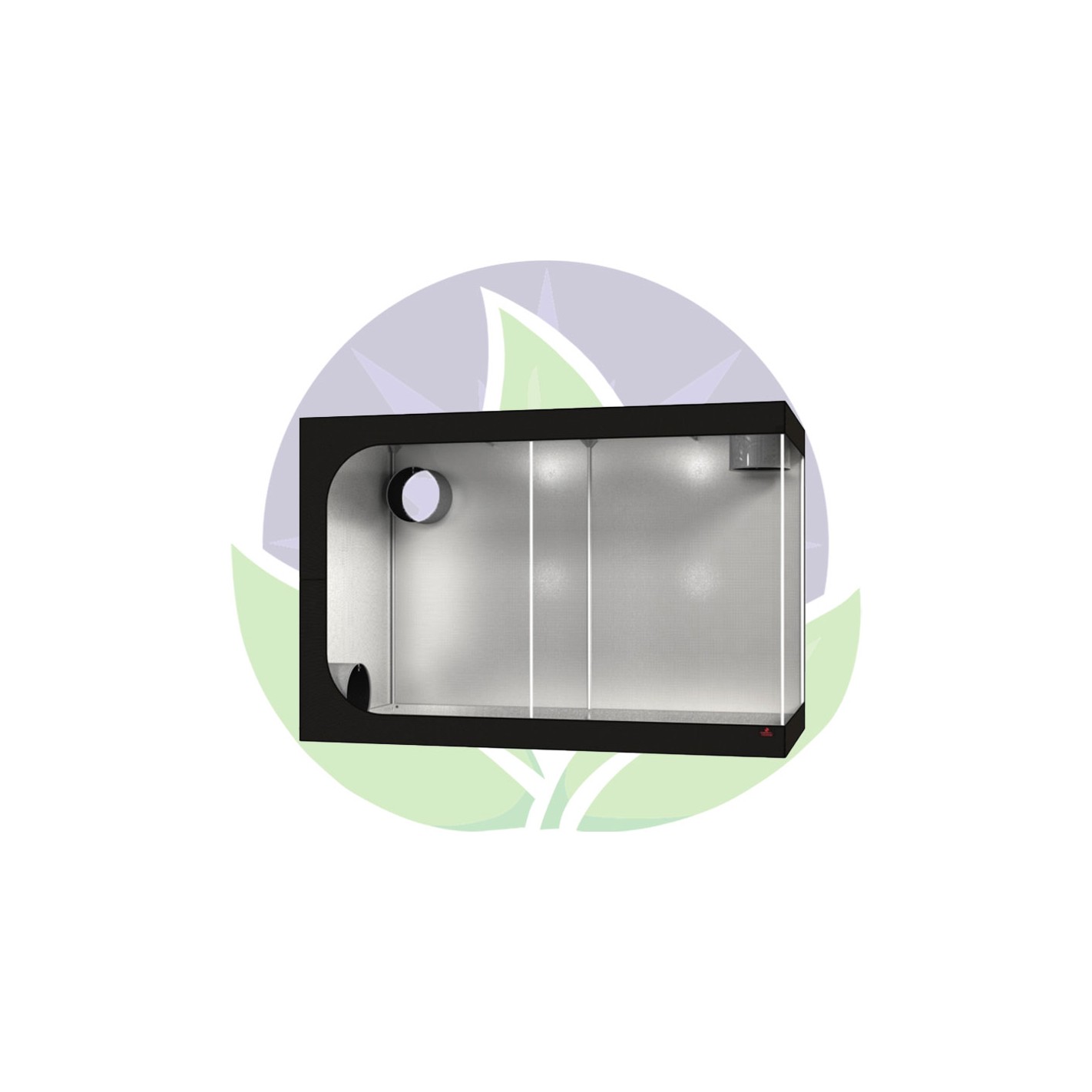 La box 300W est recouverte du revêtement intérieur Mylar 210D. Elle est équipée de barres de structures en acier de diamètre 19 mm. Ces zips d'ouverture sont à double rabat pour une parfaite étanchéité à la lumière. Ces barres de soutiens amovibles peuvent soutenir jusqu'à 15 kilos chacune pour accueillir vos éclairages, système de ventilation. La box est fournie avec un Water Tray.
